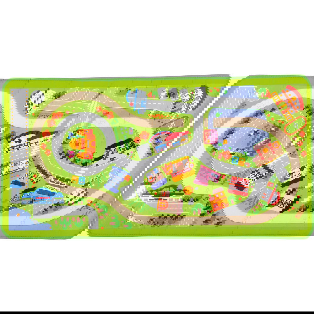 Lassen Sie die Fantasie Ihrer Kinder auf Reisen gehen mit der farbenfrohen Spielmatte – Stadt, rechteckig. Diese liebevoll gestaltete Spielmatte schafft eine einladende und inspirierende Umgebung, in der Kinder spielerisch ihre eigenen Abenteuer erleben können.