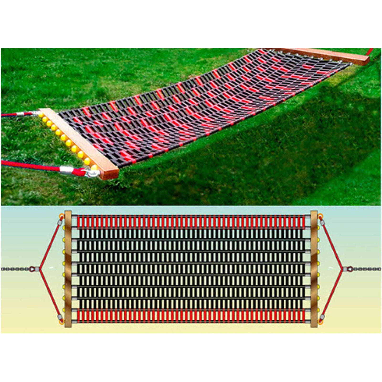 Technische Daten Spielplatz-Hängematte aus Kunststofflamellen von Beckmann Spielgeräte