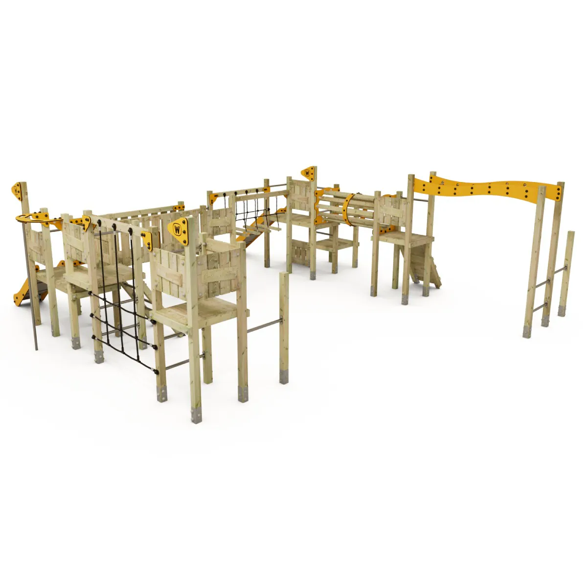 Willkommen beim Wickey PRO MAGIC Marathon! Dieses aufregende Klettergerüst ist die perfekte Wahl für öffentliche Spielplätze, Schulen und Freizeiteinrichtungen, die ein sicheres und ansprechendes Spielumfeld für Kinder im Alter von 3 bis 12 Jahren schaffen möchten. Mit seinen spannenden Features bietet „Marathon“ ein abwechslungsreiches Spielerlebnis, das die körperliche Aktivität und die Fantasie der kleinen Abenteurer fördert.