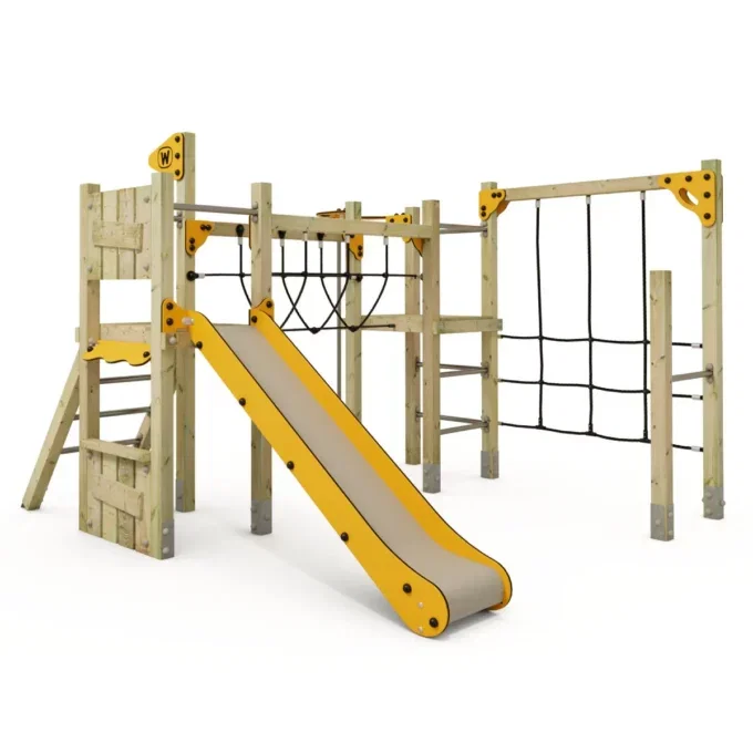 Das Wickey PRO MAGIC Race ist mehr als nur ein Spielgerät – es ist ein Erlebnis! Die Rutsche lädt zu schnellen Abfahrten ein und sorgt für Adrenalinkicks, während das Kletternetz und die Netzbrücke den Kindern die Möglichkeit bieten, ihre Kraft und Koordination zu verbessern. Die Reckstange und die Feuerwehrstange bringen zusätzliche Spannung und fördern das Spielen in der Luft. Die Freiheit der Bewegung auf diesem Klettergerüst lässt Kinder nicht nur neue Fähigkeiten entdecken, sondern fördert auch wertvolle soziale Interaktionen.
