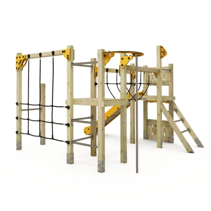 Willkommen beim Wickey PRO MAGIC Race! Dieses aufregende Klettergerüst verwandelt jeden Besuch auf dem Spielplatz in ein unvergessliches Abenteuer für Kinder. Mit einer Kombination aus Rutsche, Kletternetz, Netzbrücke, Reckstange und Feuerwehrstange bietet dieses Spielgerät alles, was sich kleine Entdecker wünschen! Perfekt für öffentliche Spielplätze und Kindergärten, fördert es sowohl die motorischen als auch die sozialen Fähigkeiten der Kinder auf spielerische Art und Weise.