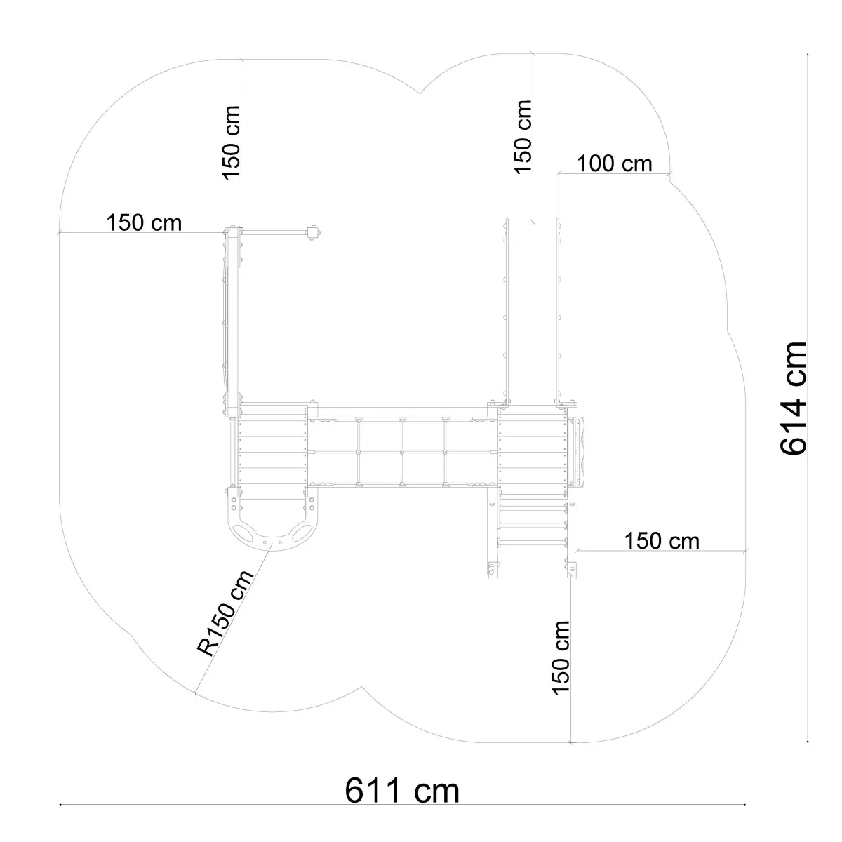 - Sicherheitsbereich (Länge x Breite): 611 x 614 cm