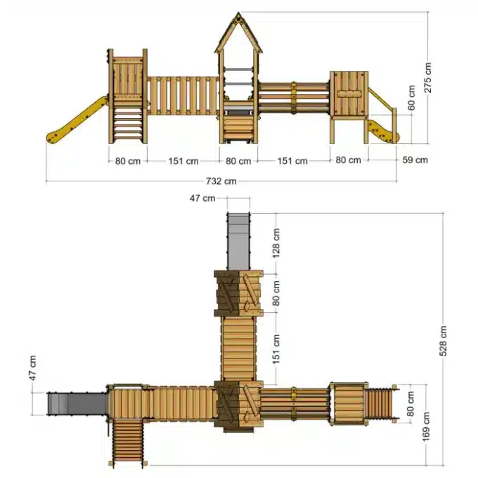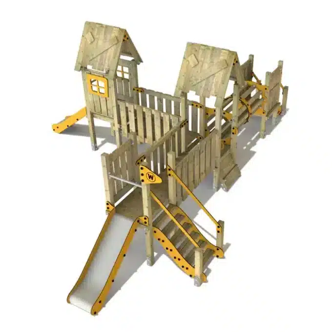 - Zwei Holzdächer und zwei HDPE-Fenster für spannende Rollenspiele