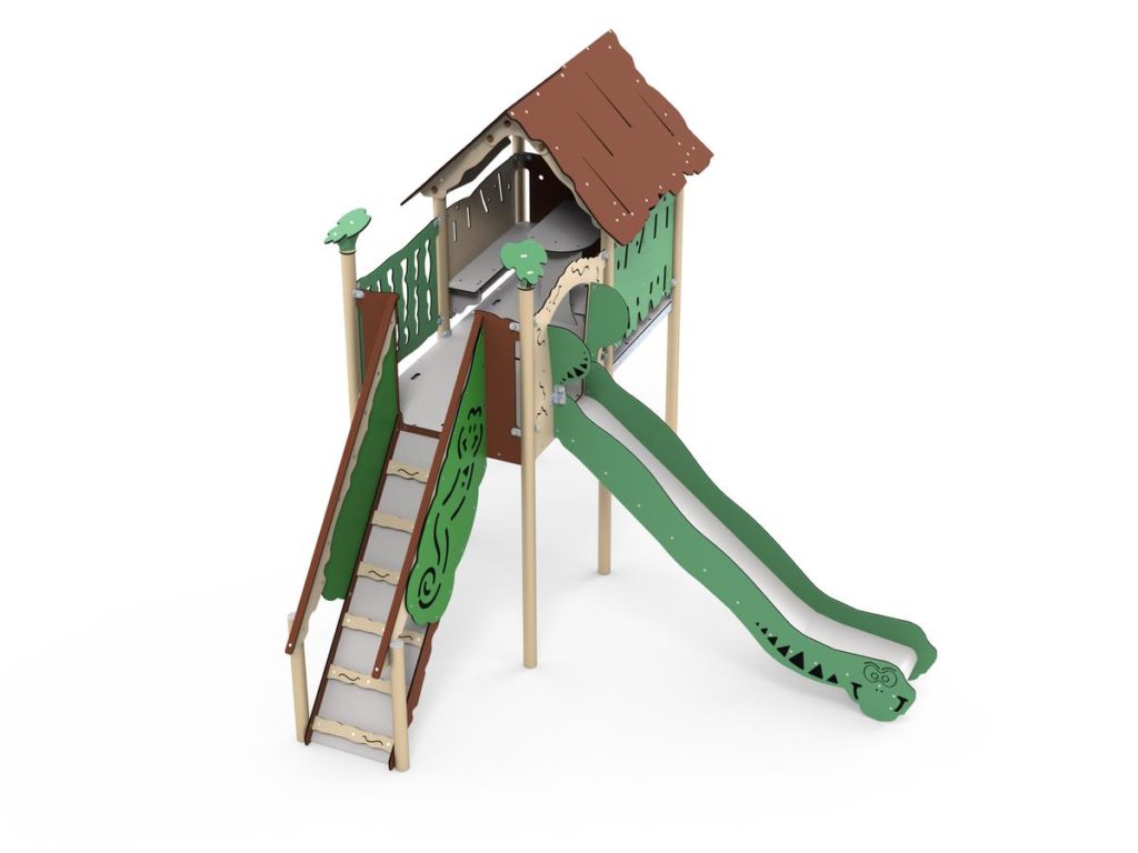 Spielplatz Mayan – mit integriertem Spielhaus und Rutsche – LEDON Explore – EX142 für Kindergarten- Außenanlagen