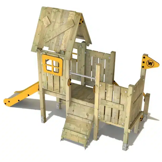 Das Spielgerät beinhaltet zudem zwei HDPE-Fenster, die nicht nur das Design verschönern, sondern auch Anreize für kreatives Rollenspiel bieten. Die Handgriffe aus HDPE und die Treppe mit Holzstufen garantieren einen sicheren Aufstieg und fördern die motorischen Fähigkeiten. Durch das Kombinieren von Spielen und Lernen wird bei den kleinen Nutzern die Kreativität angeregt, während sie gleichzeitig ihre Körperbeherrschung und Geschicklichkeit trainieren.