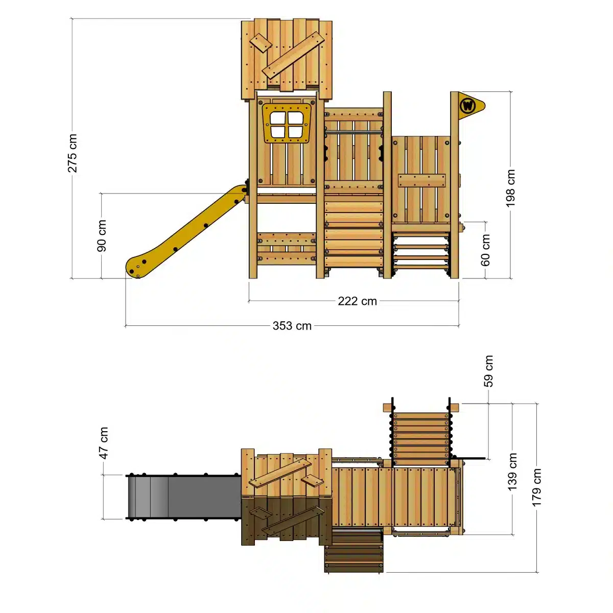 - Vielseitige Spielmöglichkeiten: Fördert kreatives Spielen, Klettern, Rutschen und soziale Interaktionen.