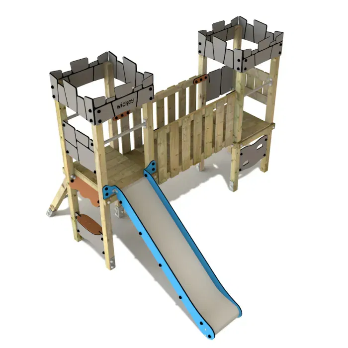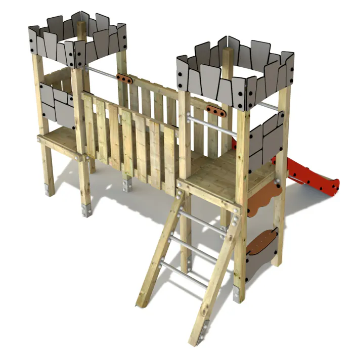 - Kletterwand aus HDPE und verschiedene Ritterburgelemente fördern drinnen und draußen die Fantasie der kleinen Ritter und Prinzessinnen.