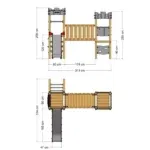 - Eine Holzbrücke und eine schräge Kletterleiter mit Edelstahlsprossen bieten abwechslungsreiche Wege und verbessern die Koordination.