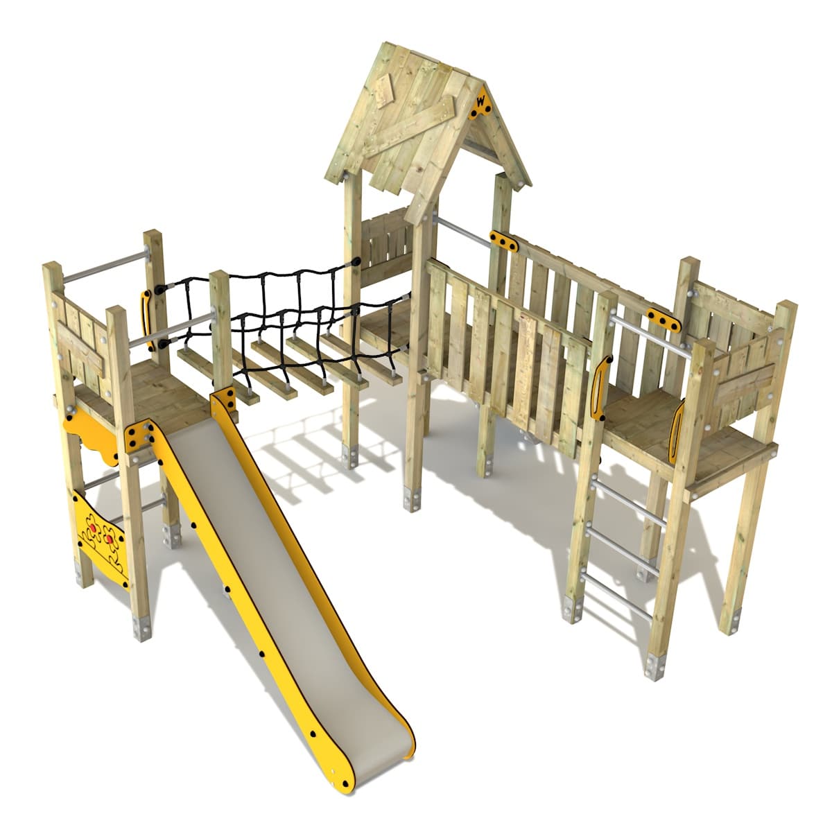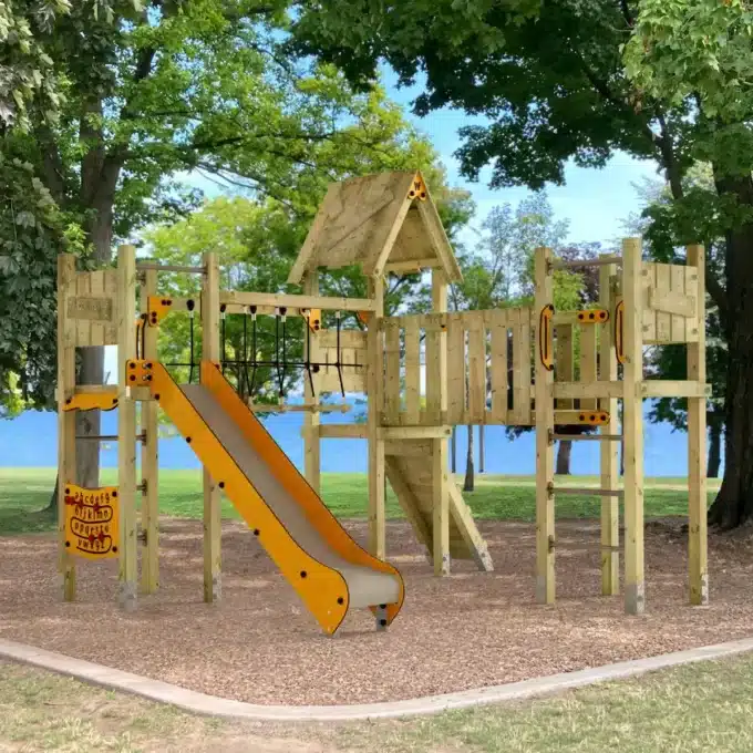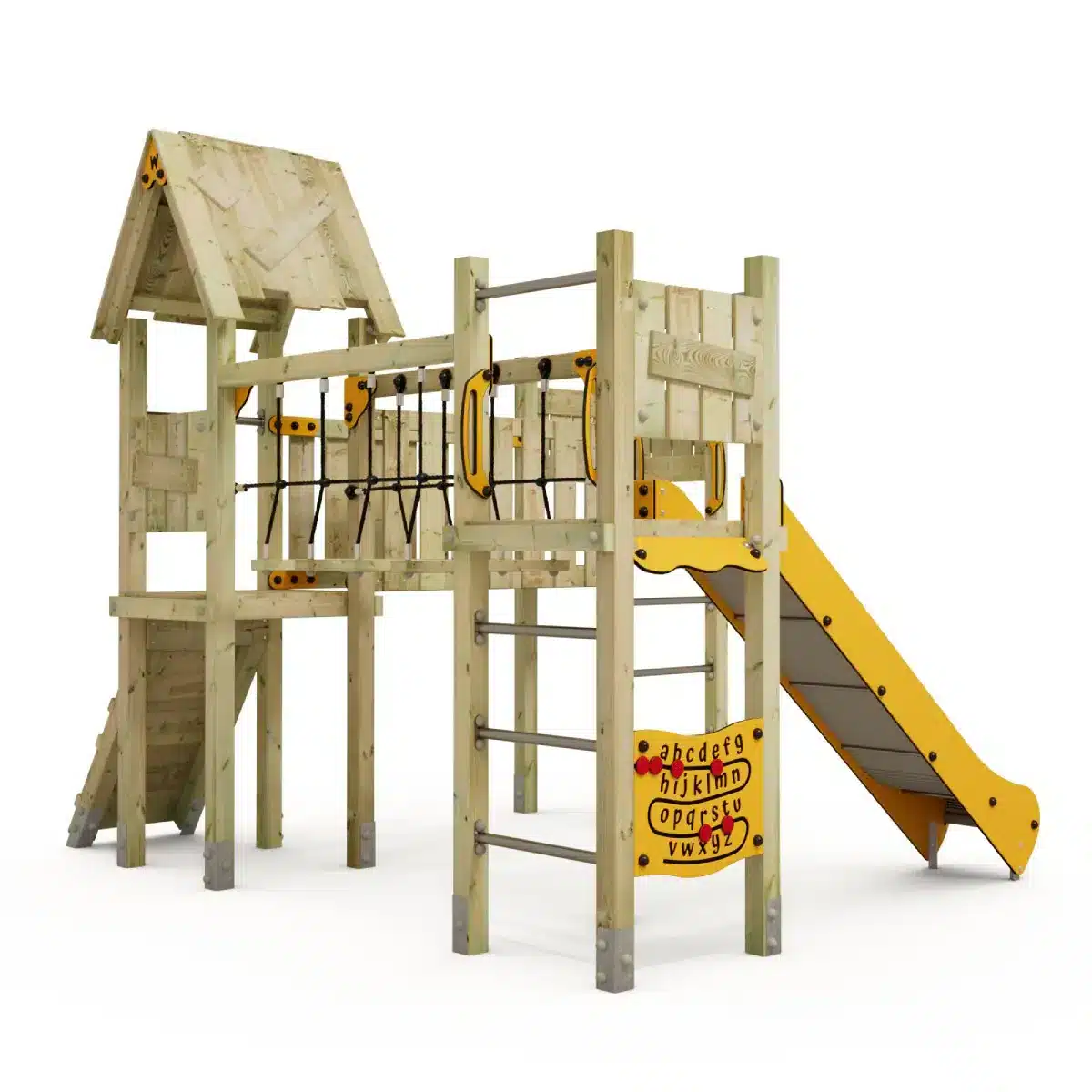 Willkommen beim Wickey PRO MAGIC Lift! Dieses aufregende Spielplatzgerät vereint alles, was das Kinderherz begehrt: Klettern, Balancieren, Rutschen und Spielen. Mit seiner durchdachten Kombination aus Wackelbrücke, interaktiver Motorikwand und Rutsche bietet „Magic Lift“ ein abwechslungsreiches Spielerlebnis, das die motorischen Fähigkeiten und das soziale Miteinander der kleinen Entdecker fördert. Ideal für öffentliche Spielplätze und Freizeiteinrichtungen – hier sind Abenteuer und Spaß garantiert!