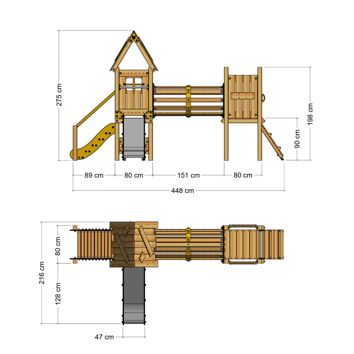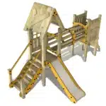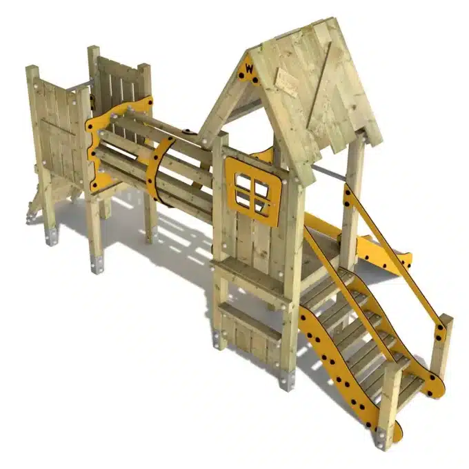 Im Detail bestehen die farbigen Elemente des Spielgeräts aus HDPE-Platten, die zu 80 % aus recyceltem Material produziert werden. Diese umweltfreundlichen Optionen haben nicht nur Vorteile für die Natur, sondern sind auch für aktive Spielstunden gebaut und halten den Herausforderungen von Wind, Wetter und Spielbetrieb stand.
