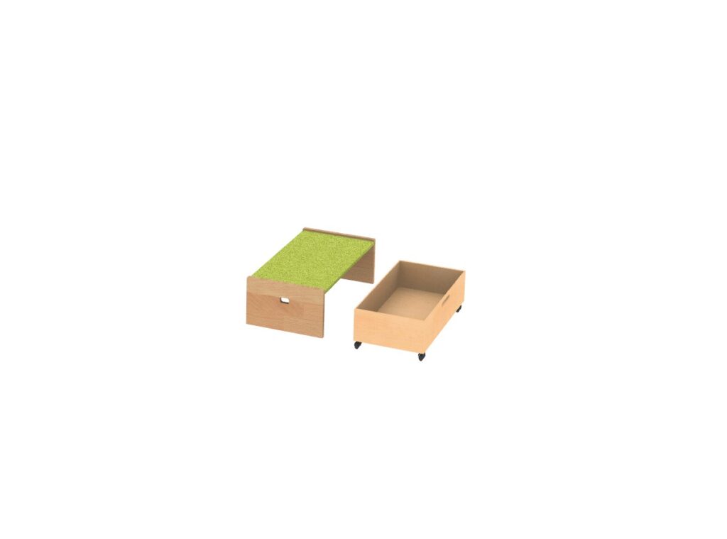 - Lieferumfang: 1 Spielpodest Rechteck, klein (ohne Rollkasten)