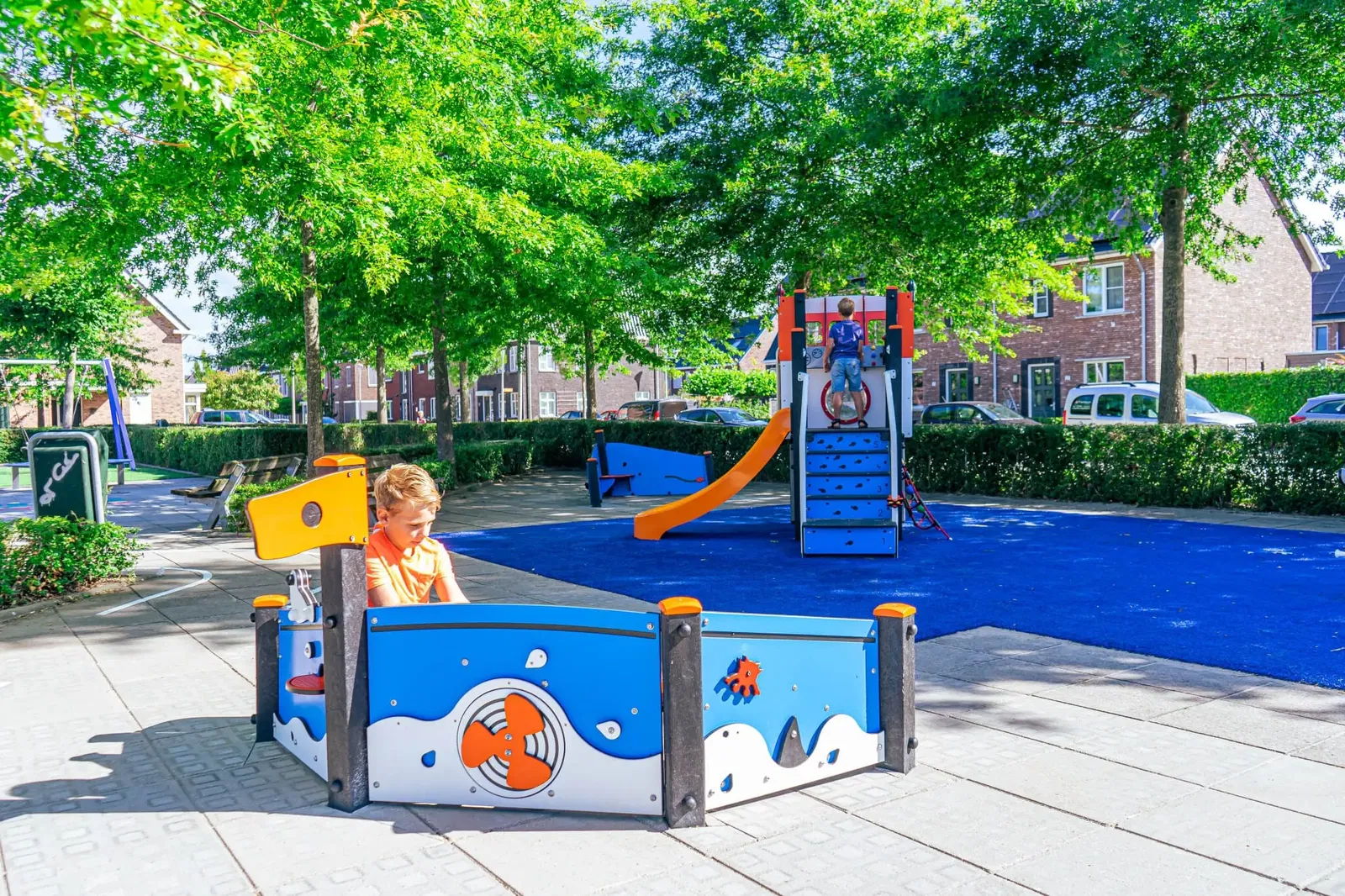 Der Fischtrawler Enkhuizen ist ein echtes Kombigerät. Er animiert zum Klettern auf das Podest, zum Balancieren an Deck und gipfelt im Rutschvergnügen. Diese verschiedenen Aktivitäten fördern die Grobmotorik, Koordination und den Gleichgewichtssinn der Kinder auf eine ganz natürliche und spielerische Weise. - Extrem robust und wartungsarm