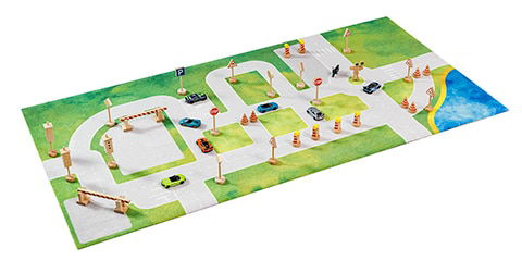 - Individuelle Gestaltungsmöglichkeiten: Die schlichte Grafik des Teppichs ermöglicht es Kindern, ihre eigenen Bauprojekte zu entwerfen und städtische Strukturen zu kreieren.