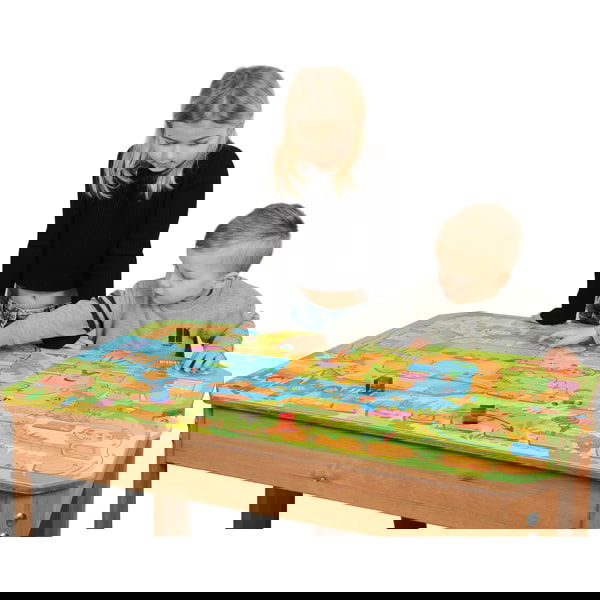 Tauchen Sie ein in fantasievolle Welten mit unserem „Spieltisch Abenteuer am Fluss“! Dieses einladende Leiterspiel lässt bis zu 6 Kinder in eine liebevoll gestaltete Flusslandschaft eintauchen, wo sie mit Pilzen gefüllte Körbe nach Hause bringen. Vom idyllischen Garten über die malerische Flusslandschaft – jedes Feld birgt neue Abenteuer. Statt eines klassischen Würfels sorgt ein eingelassenes Drehrad an der Tischseite für spannende Zufälle. Mit den kindgerechten Spielmechanismen werden Geduld, Strategie und Zählvermögen spielerisch geschult. Und das Beste: Die Kinder können eigene kleine Schätze als Spielfiguren nutzen, was der Fantasie freien Lauf lässt! Aus hochwertigem, feuchtigkeitsbeständigem Material gearbeitet, verspricht der Spieltisch Freude und Stabilität für zahlreiche Spielstunden.