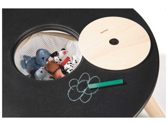 Runder Multifunktionstisch, perfekt für die ganz Kleinen! Auf der Oberfläche kann man mit Kreide schreiben und malen. Praktisch: In der Mitte befindet sich ein kleiner abnehmbarer Korb zum Verstauen von Bleistiften, Bunt- und Filzstiften oder kleinem Spielzeug! Einfache und schnelle Montage.