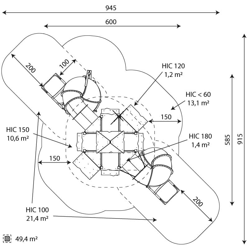 - Sicherheitszone: 49,4 m2