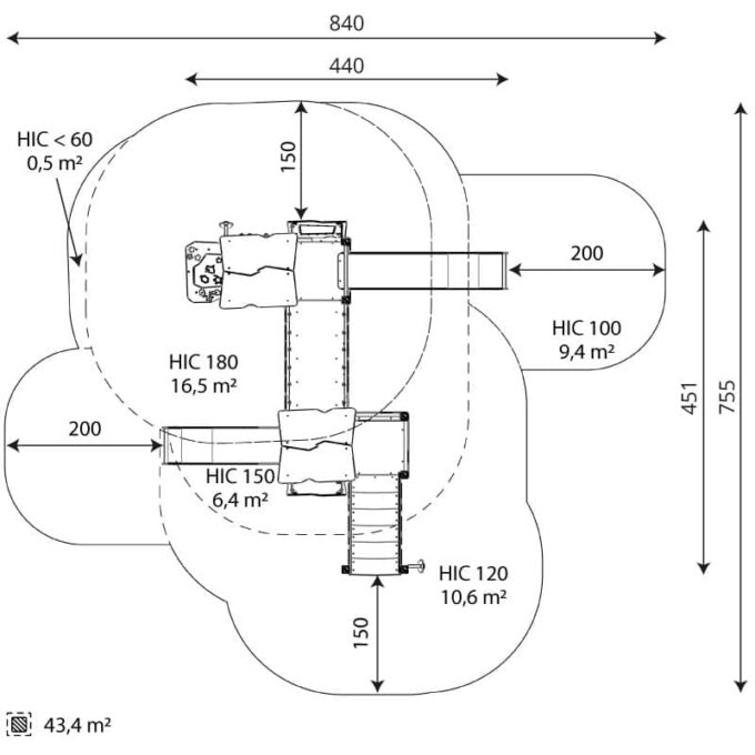 - Höhen der Plattformen: 35 cm, 120 cm, 150 cm, 180 cm