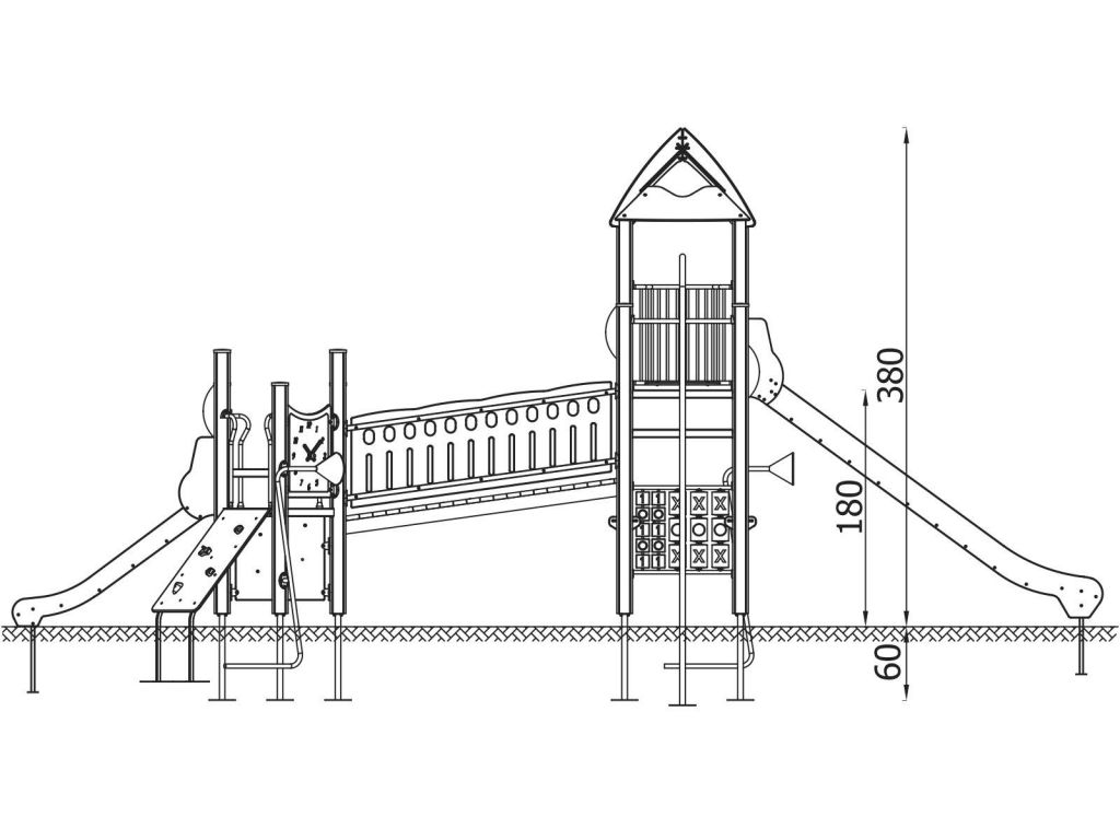 - Erläuterungen: Diese Spielanlage ist auch mit feuerverzinkten Pfosten erhältlich.