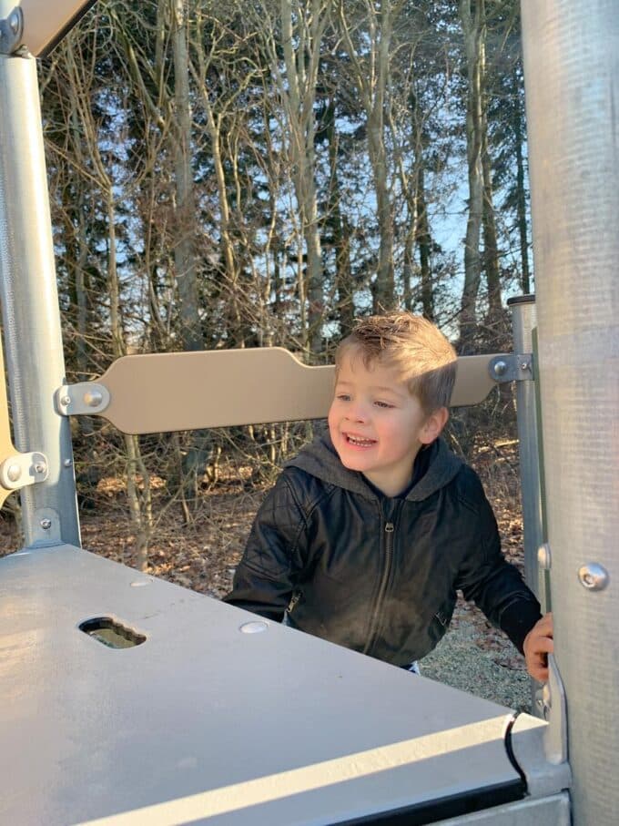 Baldur gehört zu den Spieltürmen der Reihe, die über verschiedene Ebenen verfügen. Dieses Modell bietet eine Rutsche und der Zugang zu den verschiedenen Ebenen mit einer Höhe von 90 cm bzw. 140 cm erfolgt über eine Treppe. Dadurch eignet sich der Spielturm besser für jüngere Kinder. Sind Sie auf der Suche nach einem anspruchsvolleren Modell für ältere Kinder? Dann werfen Sie doch mal einen Blick auf unsere Spielanlage LB130 Bertil.