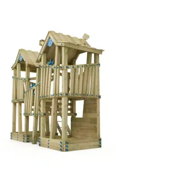 Die Sicherheit Ihrer Kinder hat oberste Priorität. Aus diesem Grund erfüllt der GIANT Mansion die strengen Anforderungen der EN 1176-Norm für Spielgeräte im öffentlichen Raum. Die solide Konstruktion aus hochwertigem Massivholz und verzinkten Befestigungsmaterialien sorgt für Stabilität und Langlebigkeit. Sicherheitsgriffe und doppelseitige Riffelprofile für bessere Trittfestigkeit machen das Spielen absolut bedenkenlos.