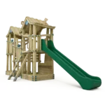 Zusätzlich sorgt die stabile Konstruktion, die mit hochwertigen Edelstahlkomponenten ausgestattet ist, dafür, dass der Spielturm auch intensiven Spielbetrieb mühelos übersteht. Eltern können sich darauf verlassen, dass ihre Kinder sicher und geschützt spielen – und das über viele Jahre hinweg.