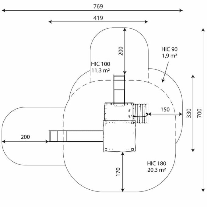 - Sicherheitszone: 33,5 m2