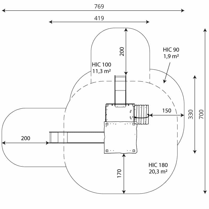 - Verankerung auf ebener Fläche, 80/70 cm tief; Rutsche sollte nicht nach Süden eingebaut werden;