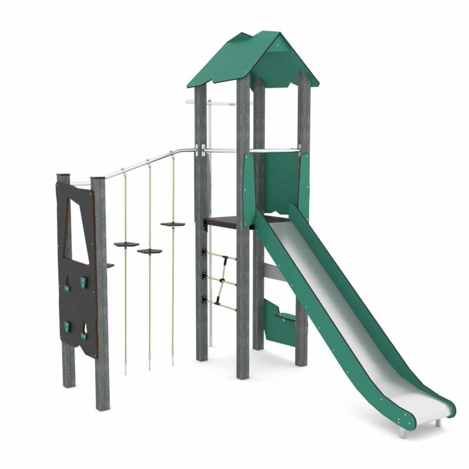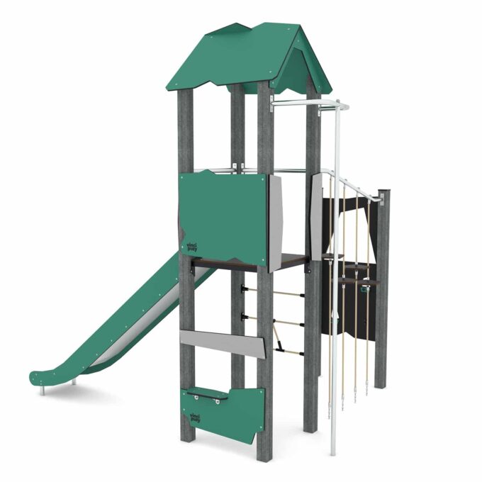 Spielturm mit Hangel- und Balancierelementen, Rutsche RECYCLED RC1405 von Vinci Play