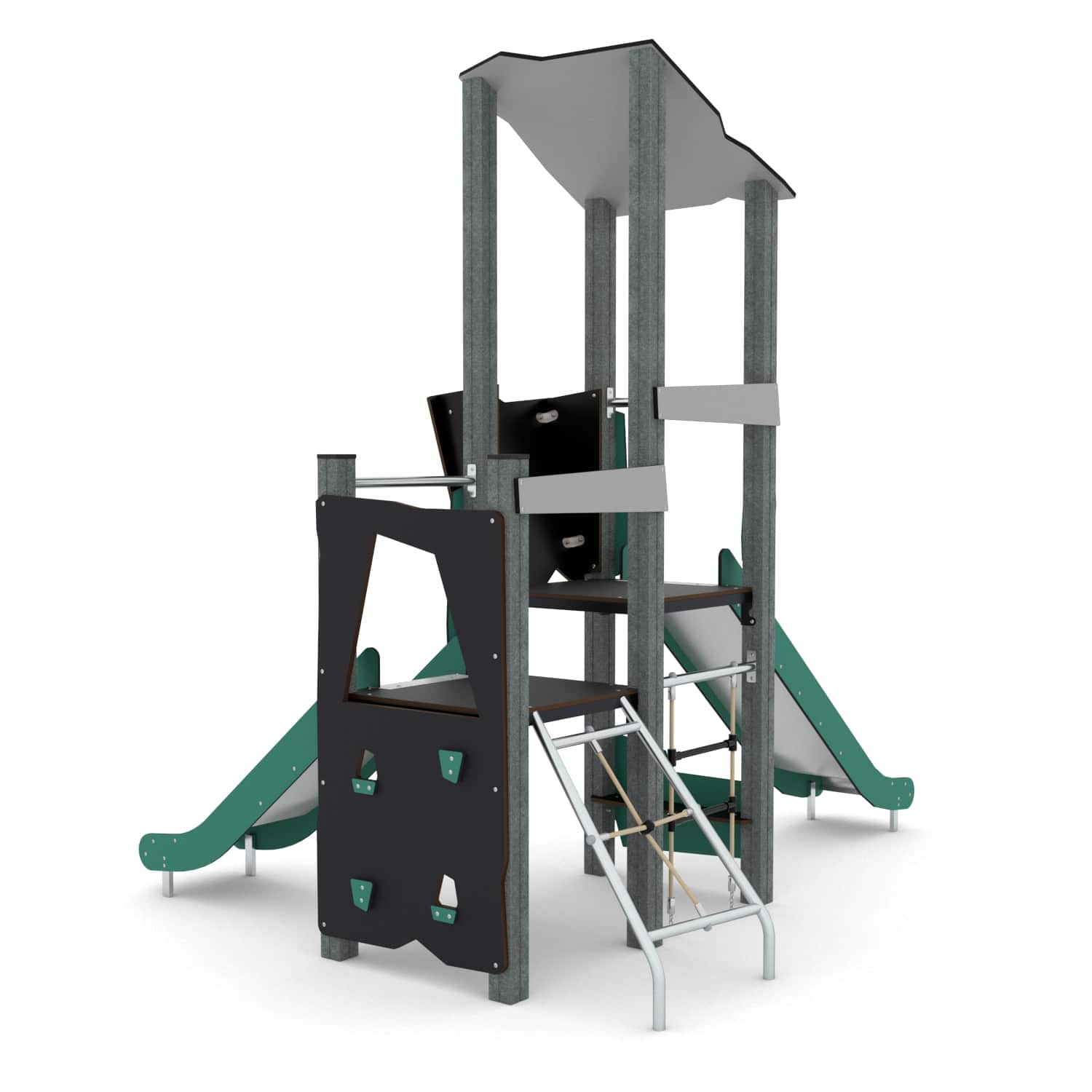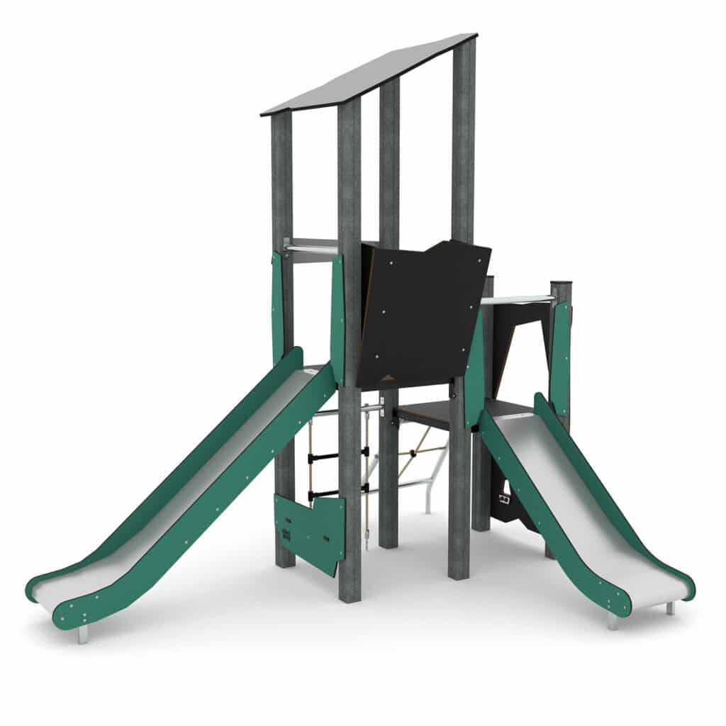 Spielturm mit Kletterelementen und 2 Rutschen und Plattformen RECYCLED RC1406 von Vinci Play
