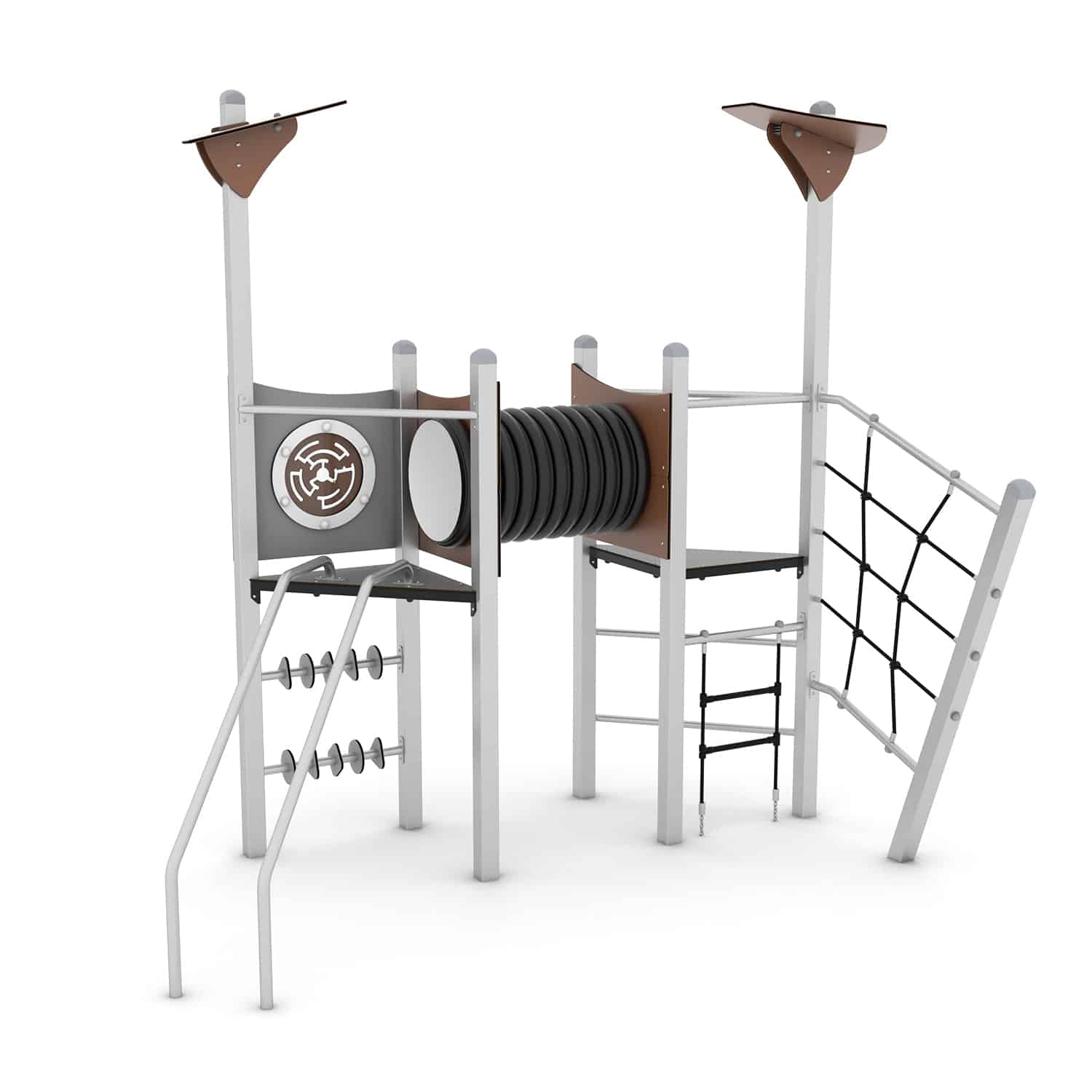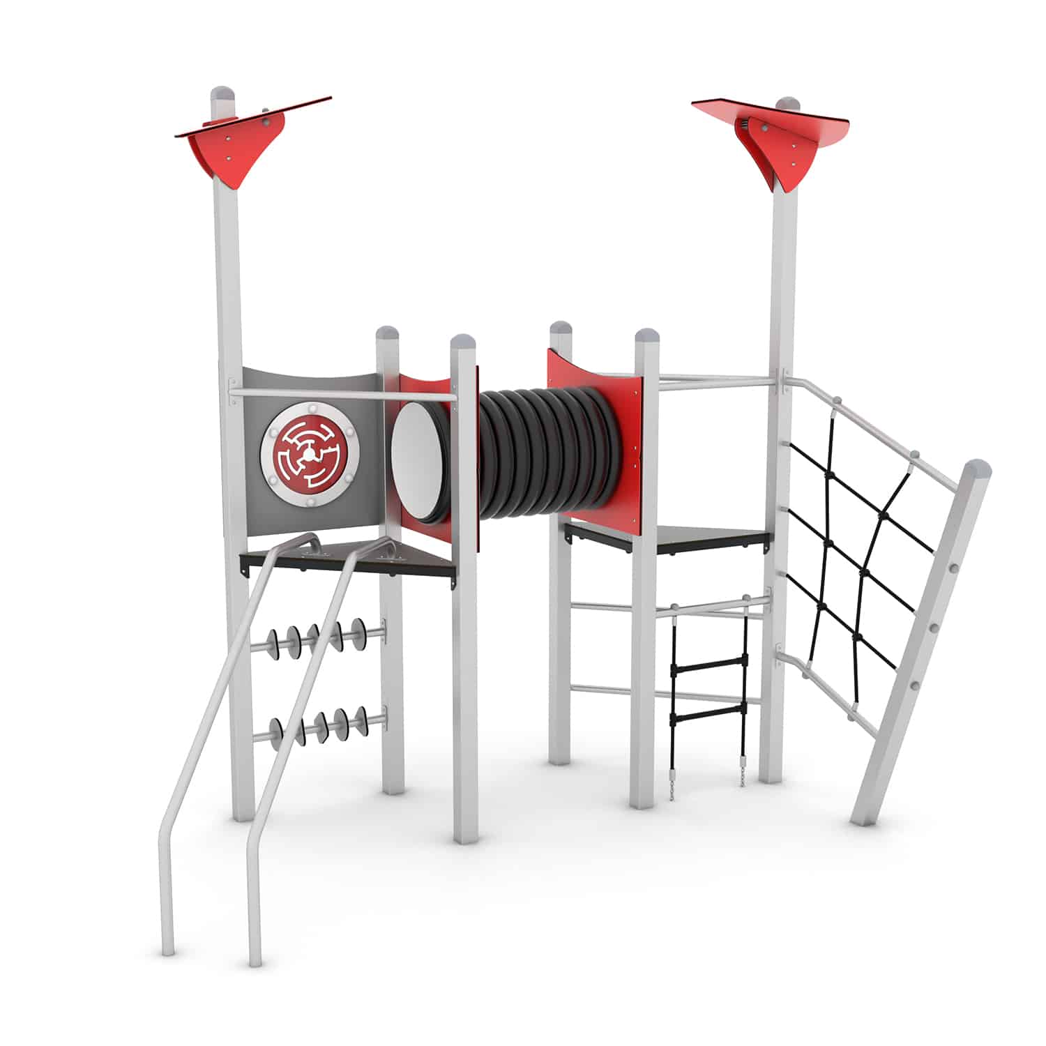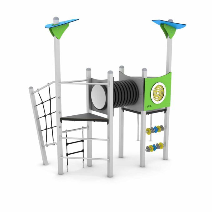 Spielturm mit Kriechrohr und Kletterelementen – STEEL+ 1717 von Vinci Play – Abenteuer für kleine Entdecker!