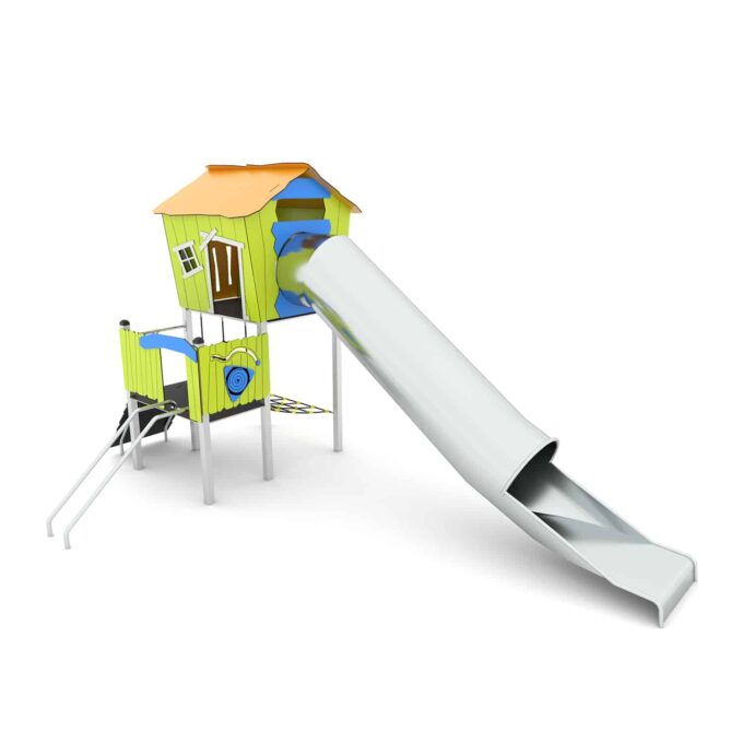 Spielturm mit Röhrenrutsche und Kletterelementen CROOC 0300 von Vinci Play