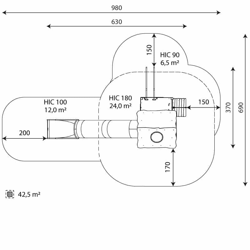 - Verankerung auf ebener Fläche, 80/70 cm tief; Rutsche sollte nicht nach Süden eingebaut werden;
