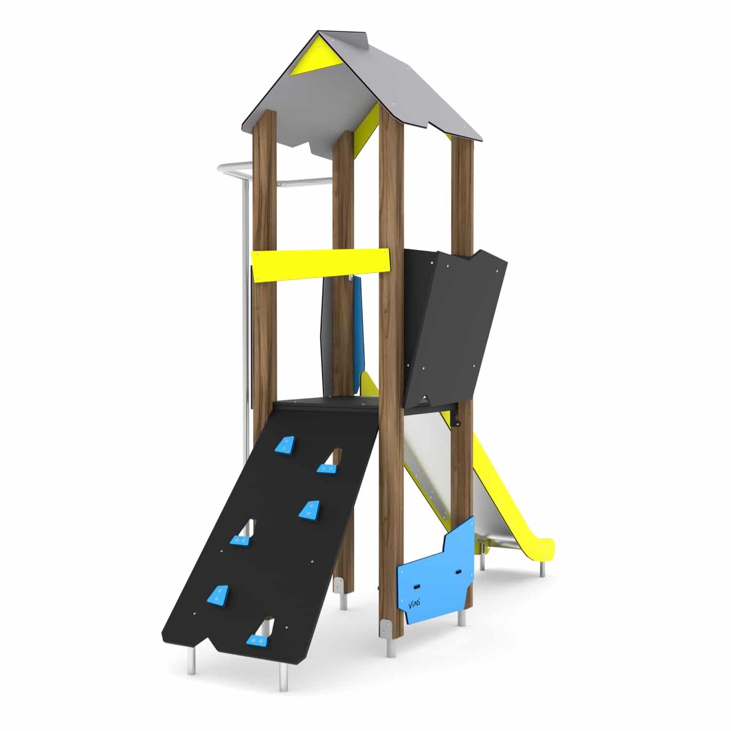 Spielturm mit Rutsche, Kletterwand und Stange WOODEN WD1404 von Vinci Play