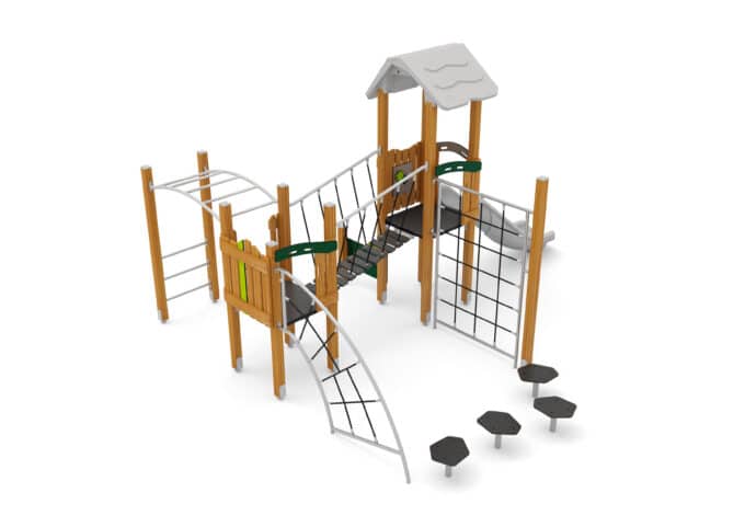 - Ein sozialer Treffpunkt mit vielfältigen Rollenspielen: Mit einer Kapazität für bis zu 23 Kinder wird dieser Turm schnell zum Mittelpunkt des sozialen Geschehens. Die Brücke wird zur Kommandostation, die Spielwände werden zu Cockpits oder Werkstätten. Kinder interagieren, kommunizieren und erfinden gemeinsam fantasievolle Geschichten. Die Anlage bietet sowohl Raum für energiegeladenes Gruppenspiel als auch für ruhigere, konzentrierte Aktivitäten an den Spielwänden.