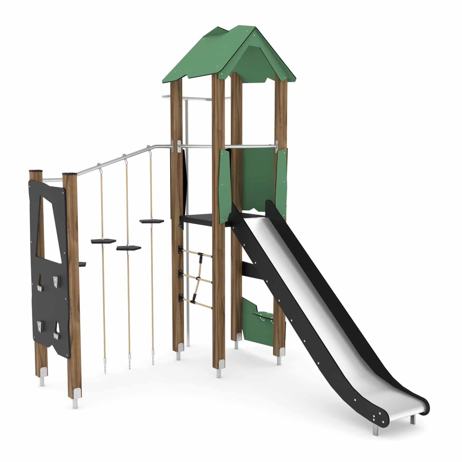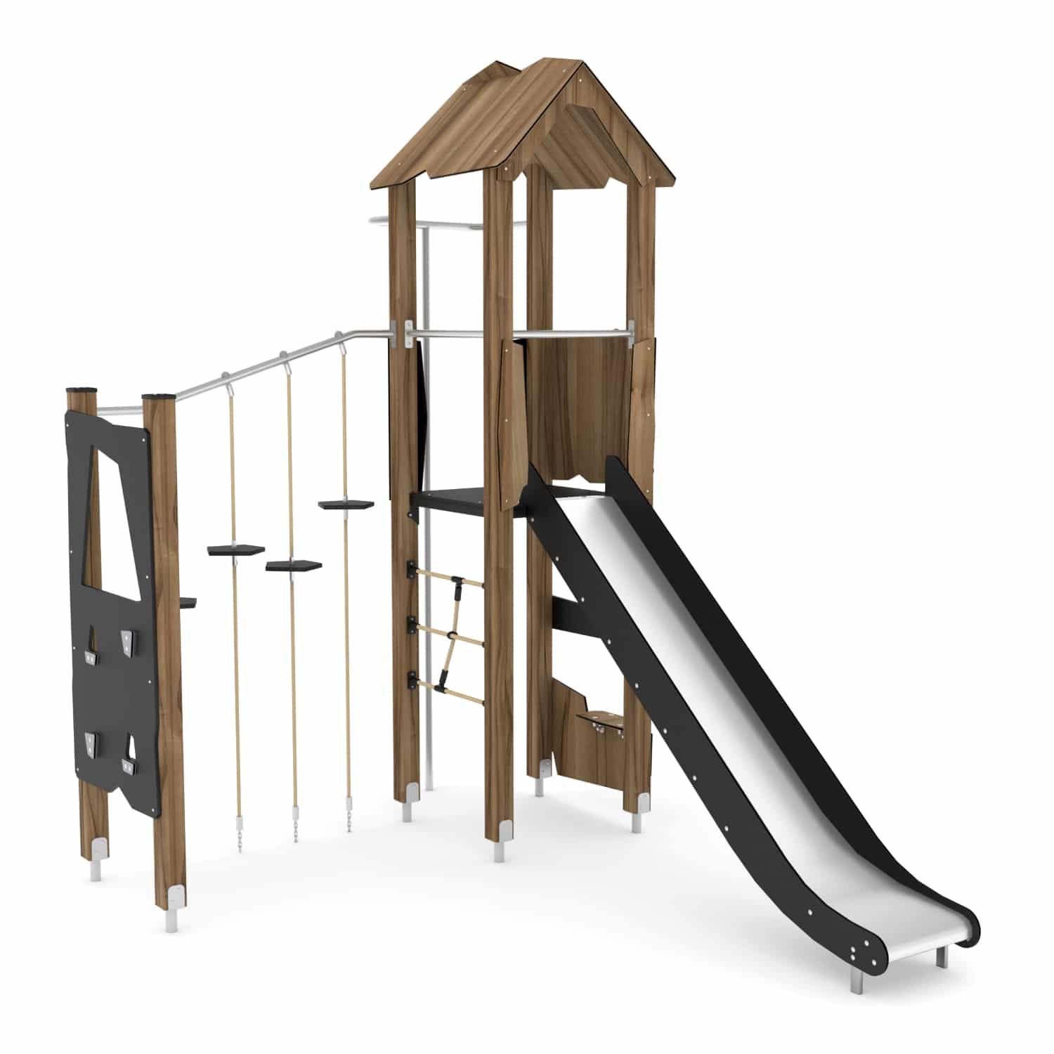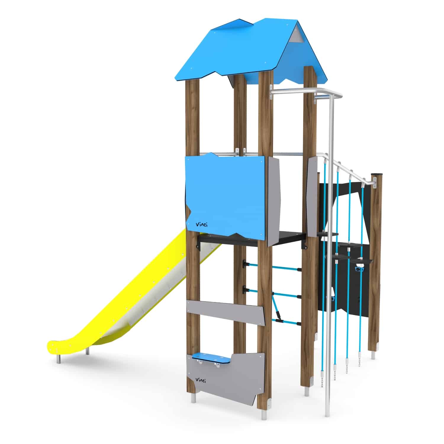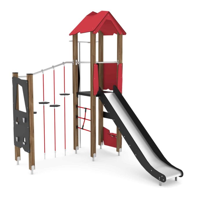 Spielturm mit Rutsche und Kletter-Hangelanlage WOODEN WD1405 von Vinci Play