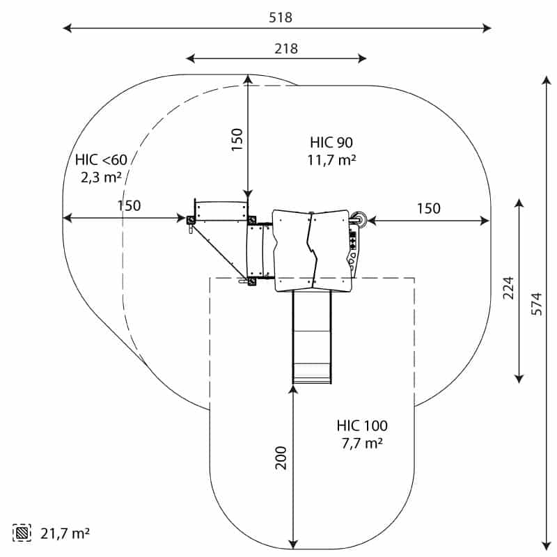 • Verankerung auf ebener Fläche, 80/70/60 cm tief;