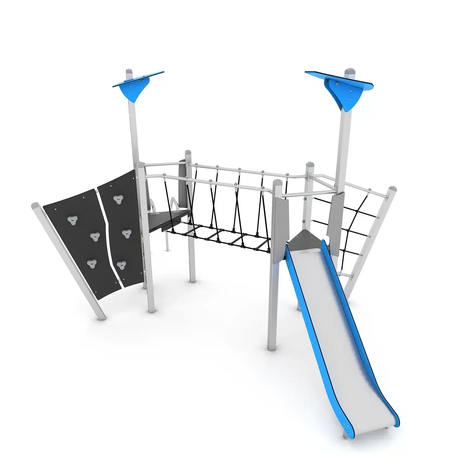 - Vielfältiger Spielspaß: Der STEEL+ 1706 vereint mehrere aufregende Spielmöglichkeiten in einem Gerät. Kinder können über die Wackelbrücke balancieren, an der Kletterwand hochziehen und mit Freunden die tollen Rutschen erobern. Durch diese Mischung aus Aktivitäten wird nicht nur die körperliche Fitness gefördert, sondern auch das soziale Miteinander gestärkt!