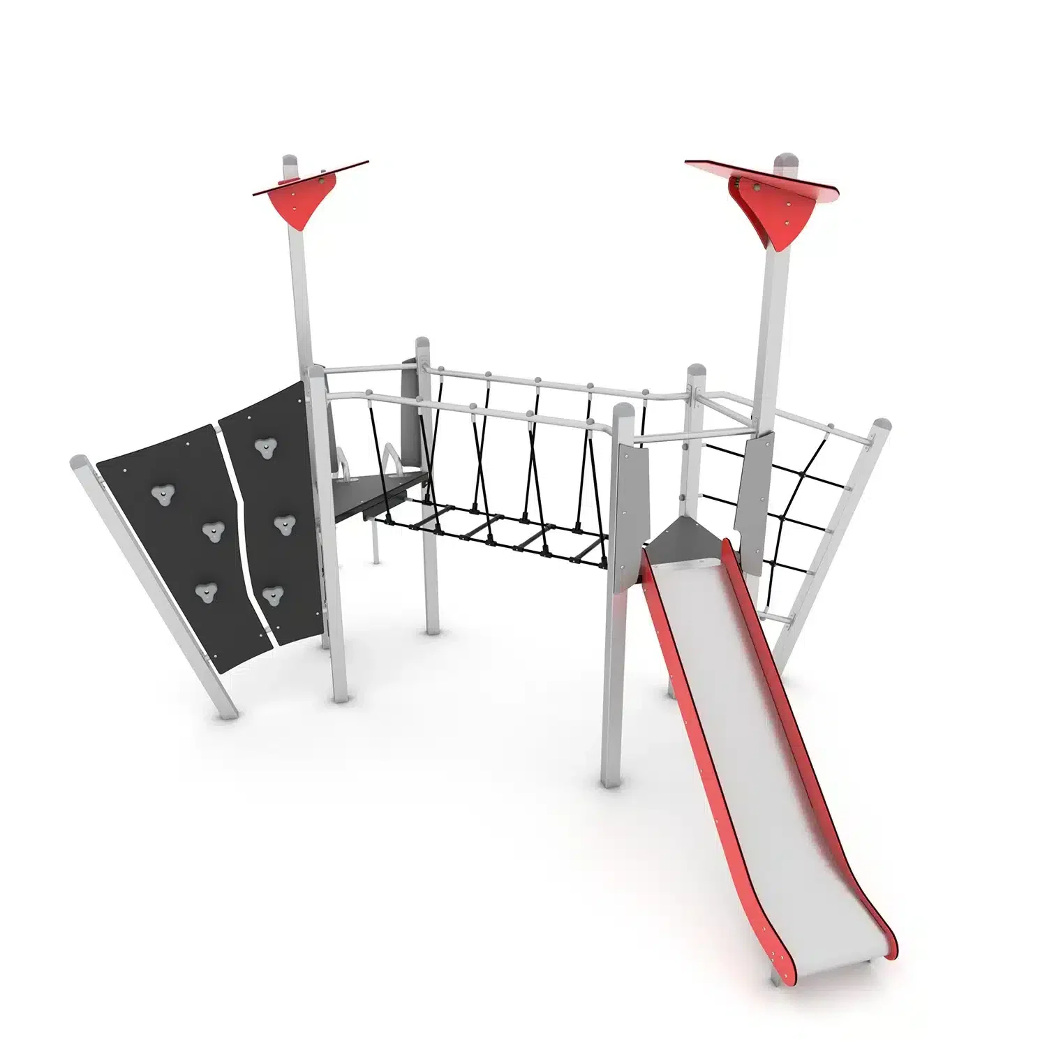 Spielturm mit Rutsche, Wackelbrücke und Kletterelementen – STEEL+ 1706 von Vinci Play – Abenteuer und Spaß für kleine Abenteurer!