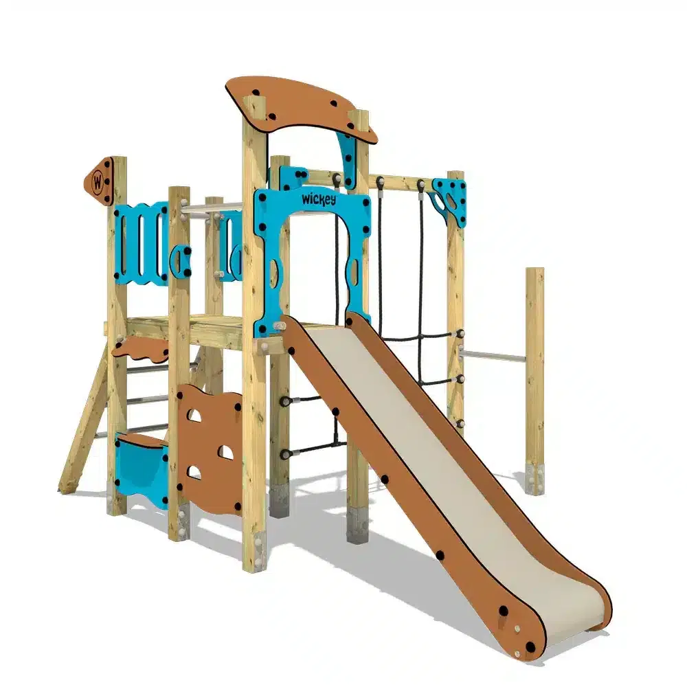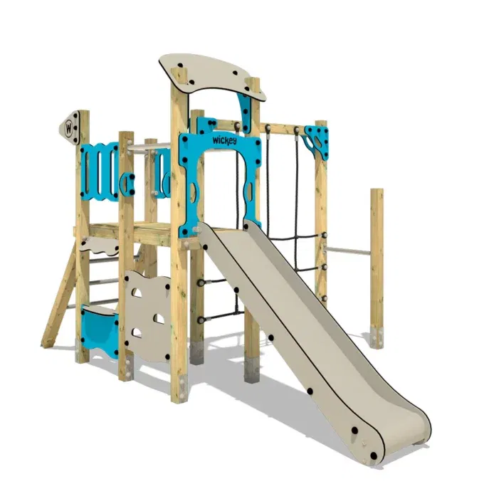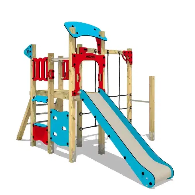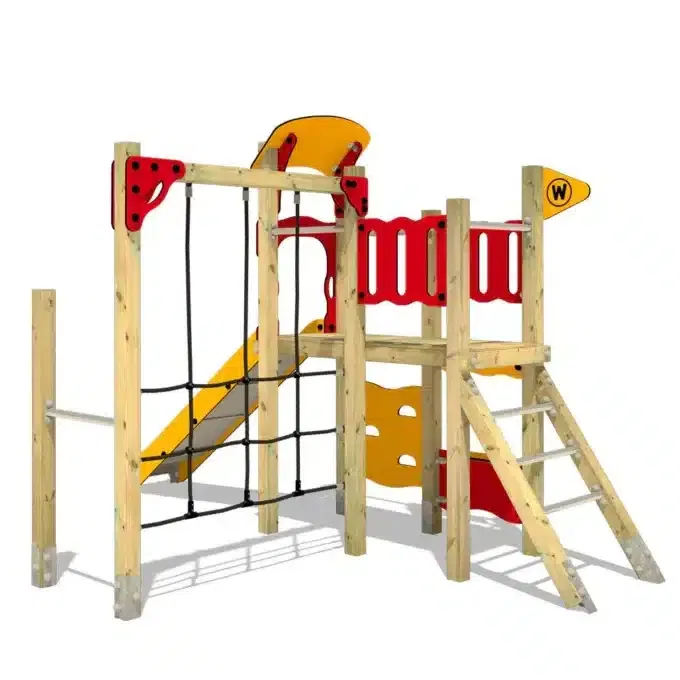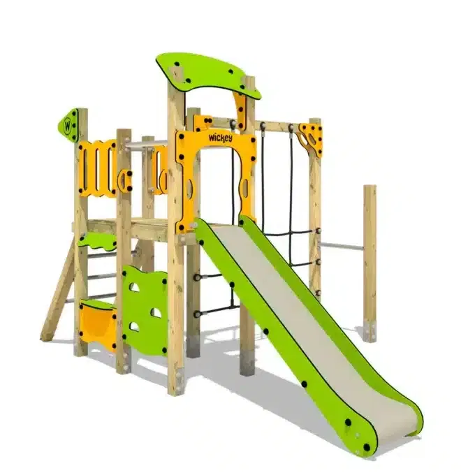 Der Wickey PRO MAGIC Smile bietet eine Vielzahl von Spiel- und Bewegungsangeboten, die ein fesselndes Spielerlebnis garantieren. Die Rutsche sorgt für aufregende Abfahrten, die Kinder begeistert nach jedem Rutsch unter dem Holzdach erwarten. Die Hangelleiter und das Kletternetz bieten großartige Möglichkeiten, die motorischen Fähigkeiten und die Kraft der kleinen Abenteurer herauszufordern.