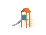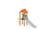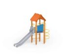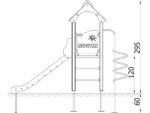 Turm 6 Artikelnr. 1133 Spielturm mit einem Satteldach, einer Rutsche, einem Bogenaufstieg, einem Einstieg. Diese Spielanlage ist auch in der Ausführung mit feuerverzinkten Pfosten erhältlich.