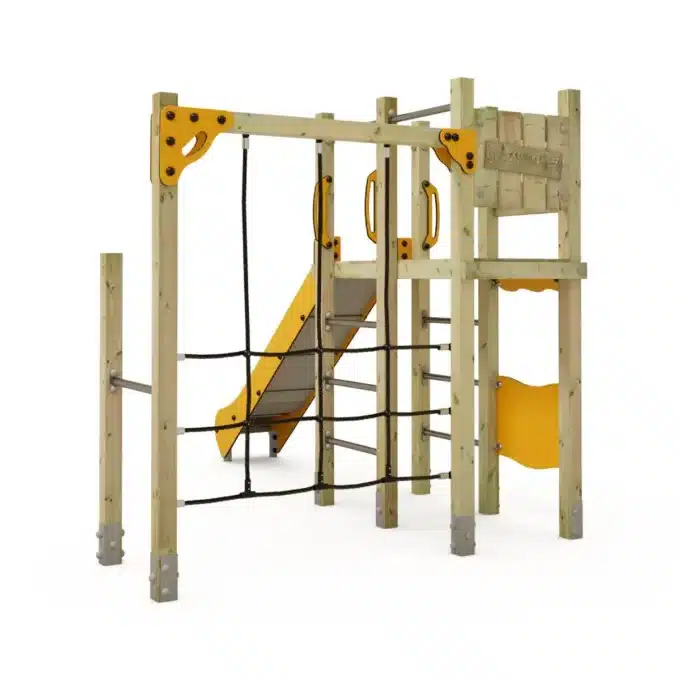 Willkommen beim Wickey PRO MAGIC Jolt! Dieser vielseitige Spielturm für Spielplätze und Kindergärten ist der Schlüssel zu unvergesslichen Abenteuern für kleine Entdecker! Mit einer Kombination aus Rutsche, Kletteraufgang, Motorikspielwand und einer interaktiven Shop-Theke schafft „MAGIC Jolt“ ein reichhaltiges Spielerlebnis, das sowohl die motorischen Fähigkeiten als auch die sozialen Kompetenzen der Kinder fördert.