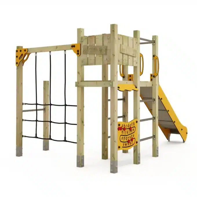 Sicherheit hat bei Wickey oberste Priorität. Der Wickey PRO MAGIC Jolt erfüllt die strengen Sicherheitsanforderungen der DIN EN 1176 und gewährleistet damit ein sicheres Spielumfeld für alle kleinen Abenteurer. Hergestellt aus europäischem Massivholz und 19 mm dicken Platten aus zweifarbigem HDPE, die zu 80 % aus recyceltem Material gefertigt sind, setzt der Jolt Spielturm auf Nachhaltigkeit und Umweltbewusstsein.