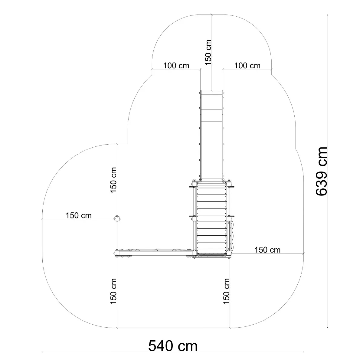 - Sicherheitsbereich: L 611 cm x B 614 cm