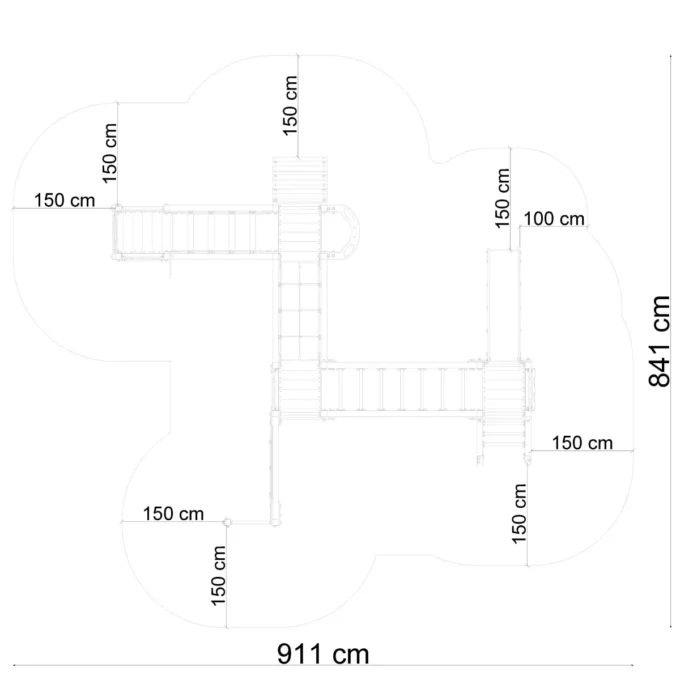 - Sicherheitsbereich: L 841 cm x B 911 cm