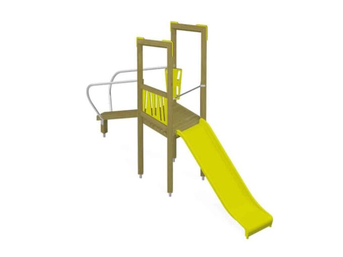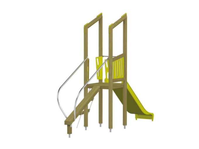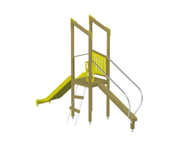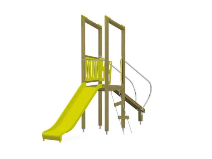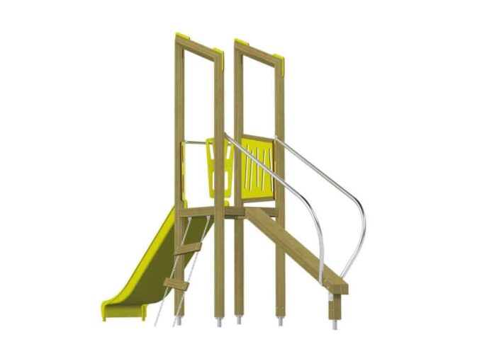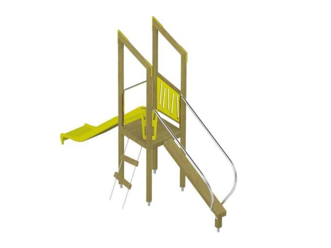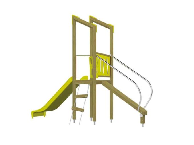 Der Spielturm Triangulo 17102 besteht aus einem Spielturm ohne Dach, einer Rutsche, einem Balancierbalken mit Haltstangen und einer Leiter. Das farbenfrohe Set macht jeden Kindergarten- oder Vorschulspielplatz attraktiver.