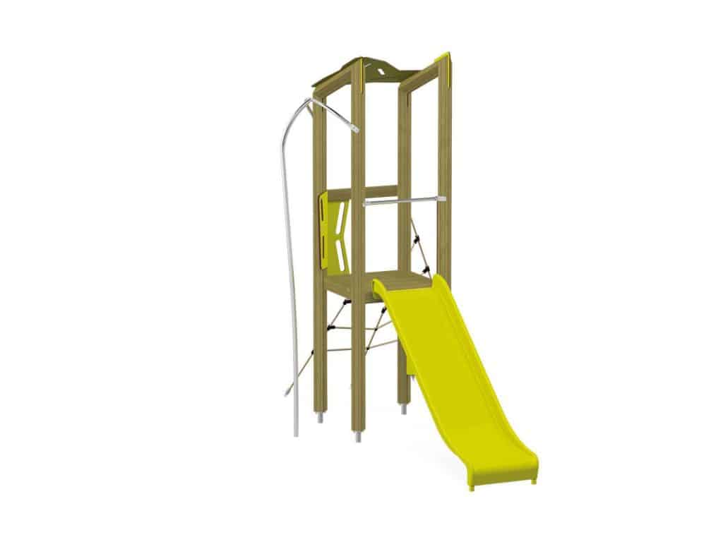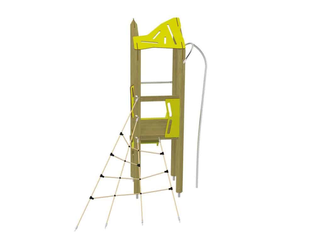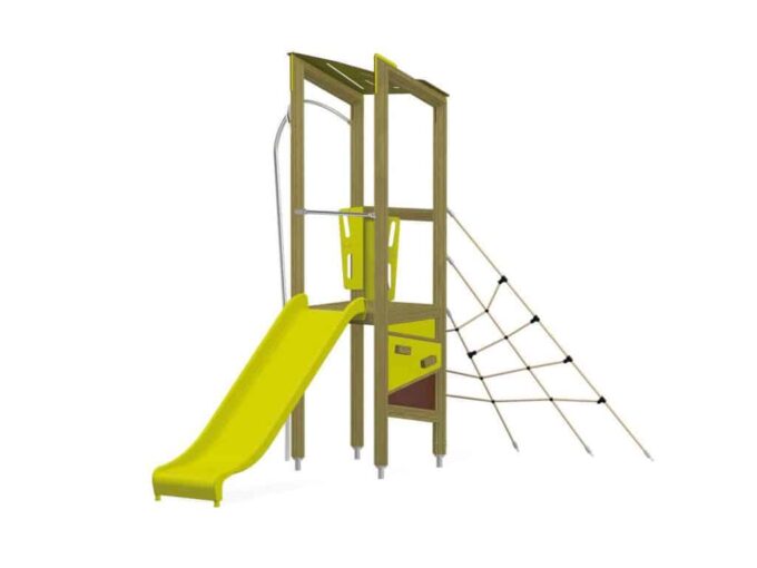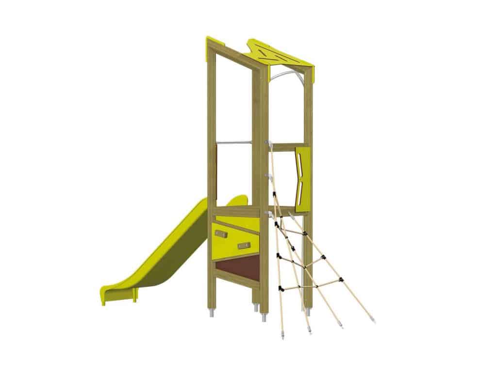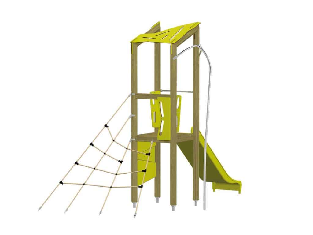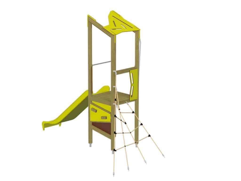 Der Spielturm Triangulo 17103 besteht aus einem Spielturm ohne Dach, einer Rutsche, einer Rutschstange und einem Kletternetz. Das farbenfrohe Set macht jeden Kindergarten- oder Vorschulspielplatz attraktiver.