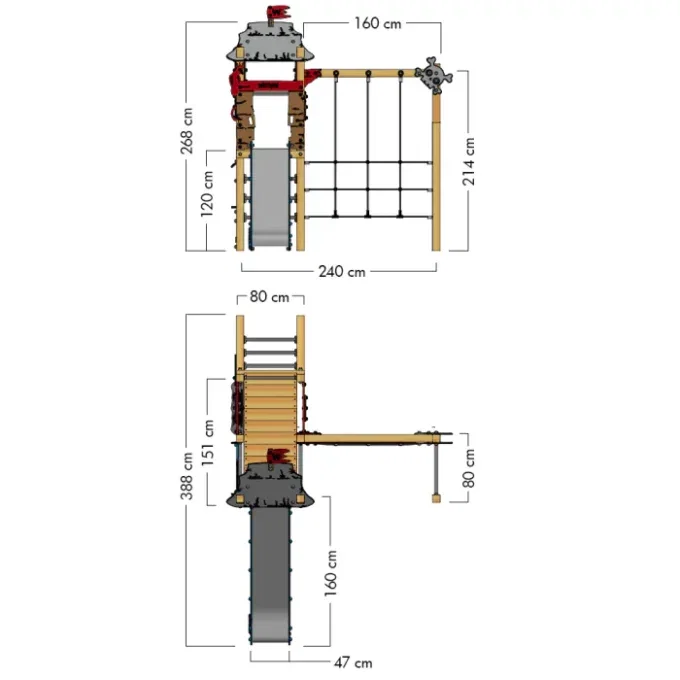 - Kletterwand und Kletternetz für kleine Bergsteiger