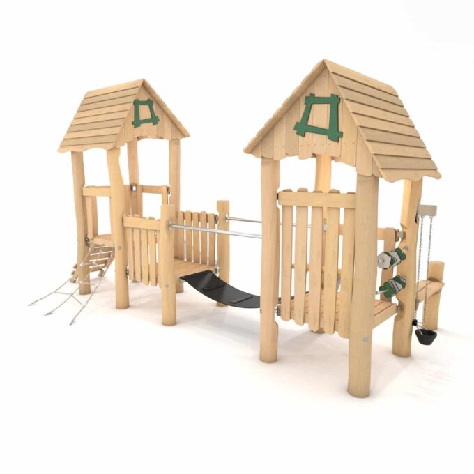 Holen Sie sich die Spielturmanlage mit 2 Türmen, Rutsche und Wackelbrücke – ROBINIA RB1207 und schaffen Sie einen kreativen Spielplatz, der Ihre Kinder dazu einlädt, aktiv und begeistert zu spielen! Diese hochwertige Spielanlage fördert Spiel und Bewegung und sorgt dafür, dass Kinder in einer inspirierenden und sicheren Umgebung wachsen und lernen können.