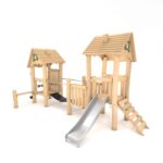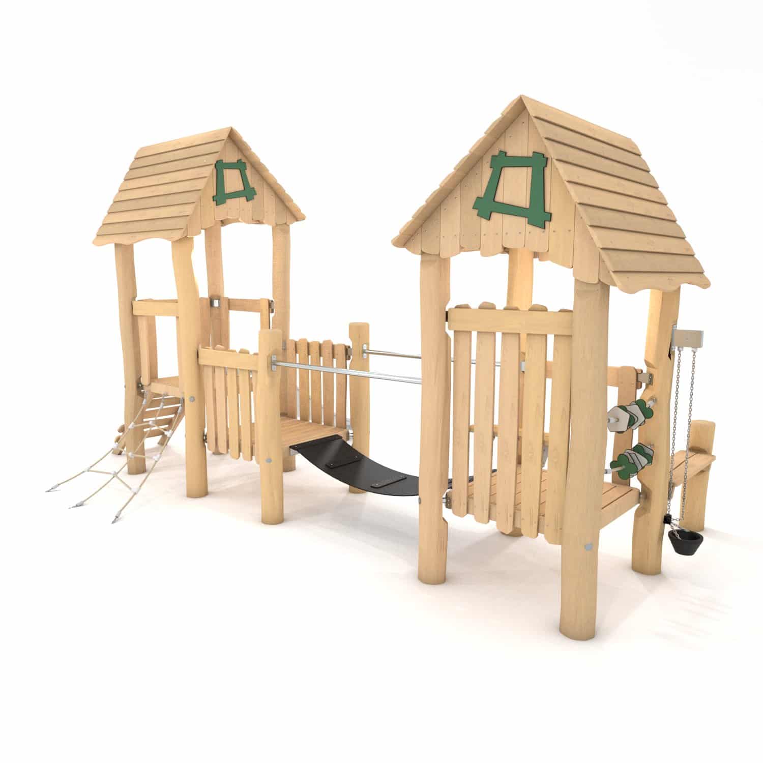Spielturmanlage mit 2 Türmen, Rutsche und Wackelbrücke – ROBINIA RB1207 von Vinci Play – Abenteuer für kleine Entdecker!
