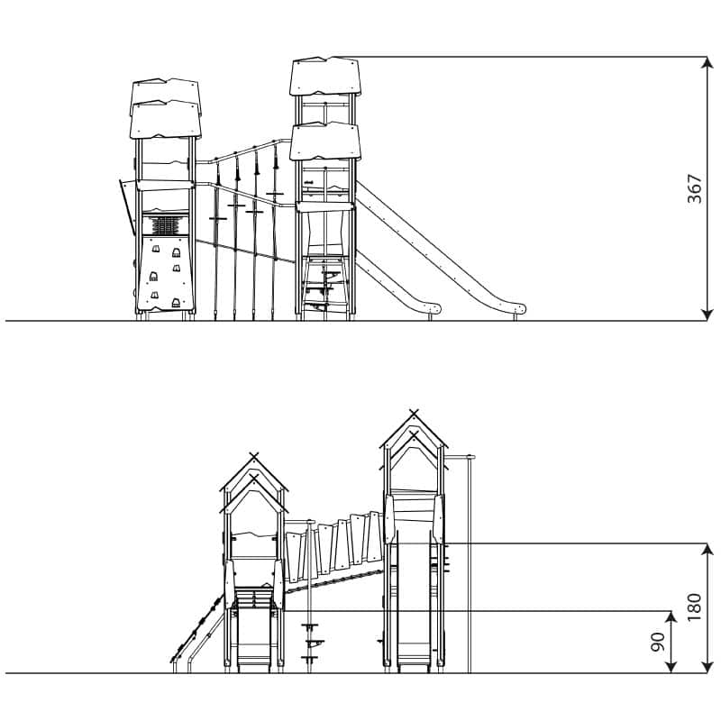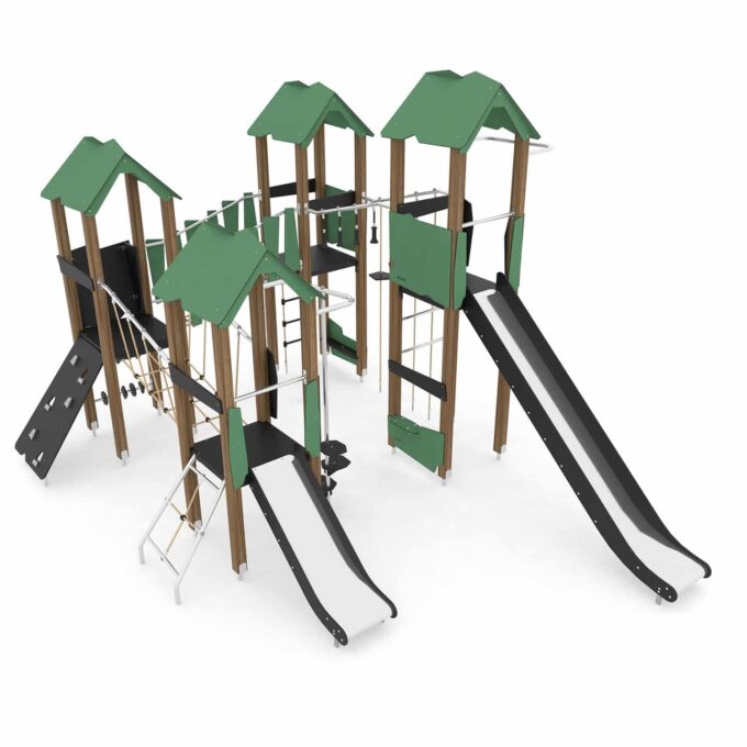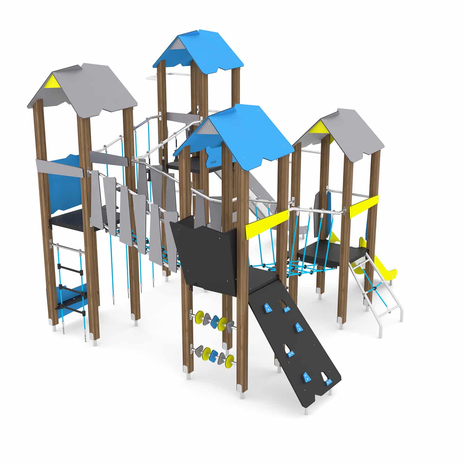 Technische Daten Spielturmanlage mit 4 Türmen und 2 Rutschen WOODEN WD1412 von Vinci Play